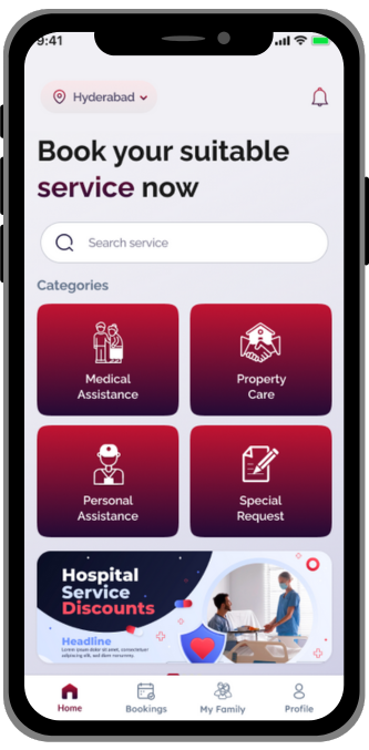 Aboin offers more than just local help. We provide professionally trained and verified staff who offer trusted support for NRI medical care, property management, and elderly care—all while keeping you updated via our app.